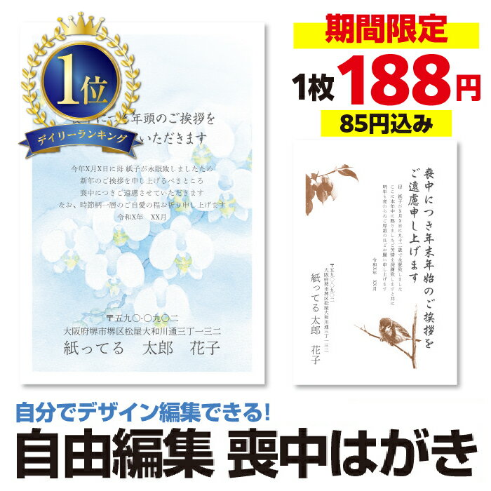 デイリーランク1位【12枚以上1枚単位】喪中はがき 喪中葉書 12枚〜200枚 喪中ハガキ 官製 自由編集 喪中挨拶 欠礼状 送料無料 85円切手