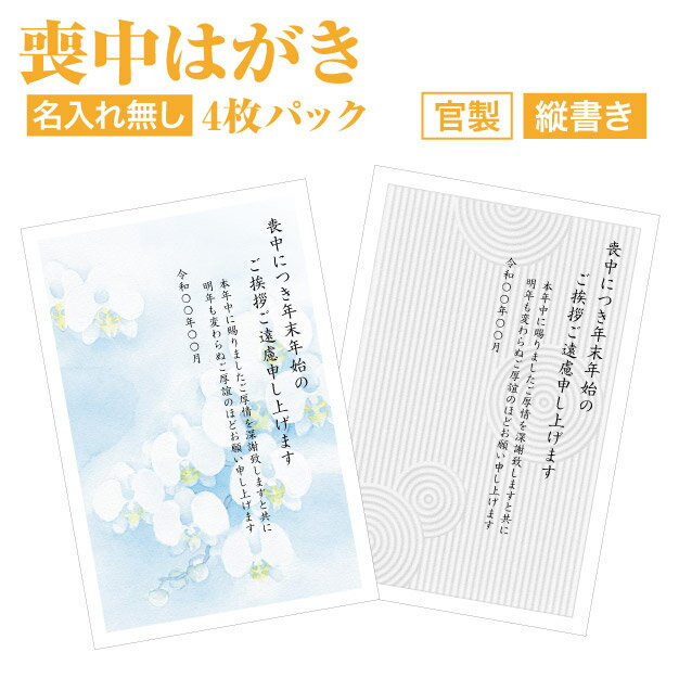 喪中はがき【名入れなし】 4枚パック【差出人名入れ無し 縦書き 官製はがき タテ】喪中はがき 喪中ハガキ スピード仕上げ 寒中見舞い 寒中はがき 寒中ハガキ 寒中見舞い はがき