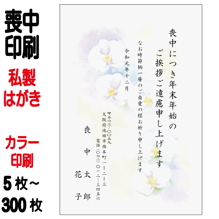 喪中はがき 印刷 私製はがき カラー印刷 5枚〜300枚 【切手はお客様でご用意のうえ貼って投函して下さい】
