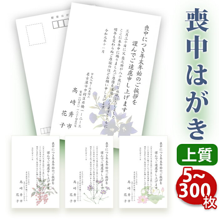 喪中はがき 印刷【上質紙はがき(私製はがき)】【5~300枚セット】■喪中はがき専門店 喪中ハガキ 法事 はがき 年賀欠礼 イラスト付 綺麗 丁寧 レビュー件数第1位■内容校了後2〜4営業日で発送予定