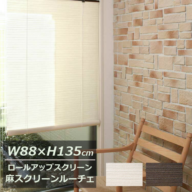 【在庫限り】麻スクリーン 幅88cm×高さ135cm LUCE(ルーチェ) ホワイト・ブラウン 遮光 目隠し 大湖産業 アジアン すだれ ロールスクリーン 和風 和 ジャパニーズ 麻…