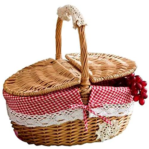 手作りの柳条バスケット 枝編み細工品 キャンプ、ピクニックのバスケット ショッピング収納バスケットとハンドルの木製柳条ピクニックバスケット
