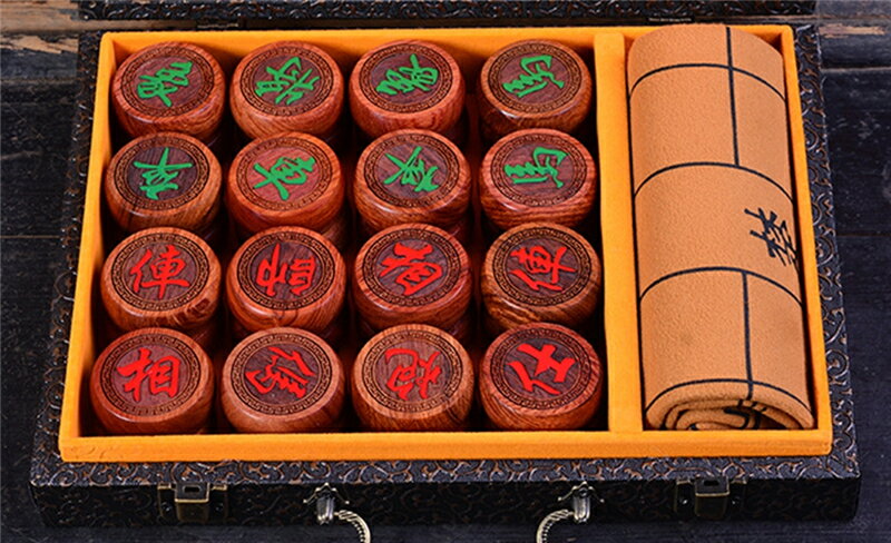 独特の上品 美品 中国象棋 実木製駒 本格的家庭用中国将棋 駒 直径 5cm 学校用将棋セット 携帯レザー皮革棋盤面 チェスボード