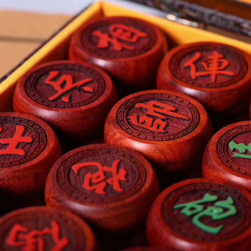 独特の上品 美品 中国象棋 実木製駒 本格的家庭用中国将棋 駒直径 6cm 学校用将棋セット 携帯レザー皮革棋盤面 チェスボード
