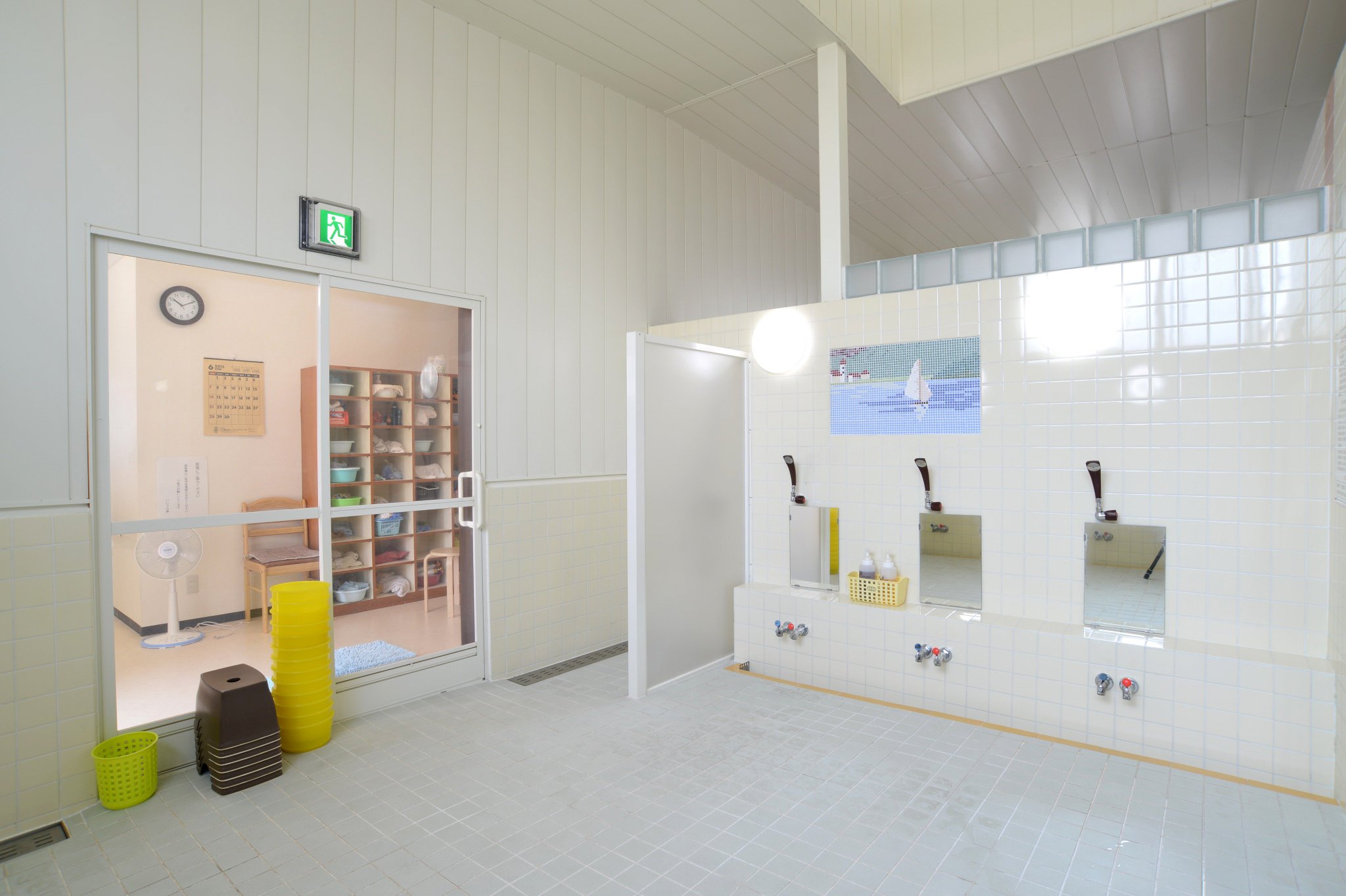 風呂桶シャーレを手にする小林さん=改正湯で