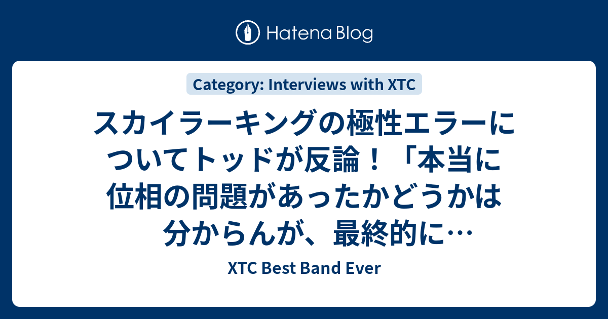 XTC Best Band Ever  スカイラーキングの極性エラーについてトッドが反論!「本当に位相の問題があったかどうかは分からんが、最終的にリリースされたアルバムのマスタリングには僕は一切関与していない!」