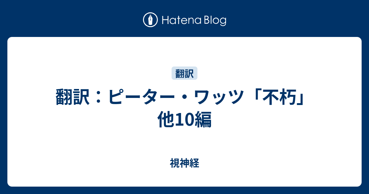 視神経  翻訳:ピーター・ワッツ「不朽」他10編