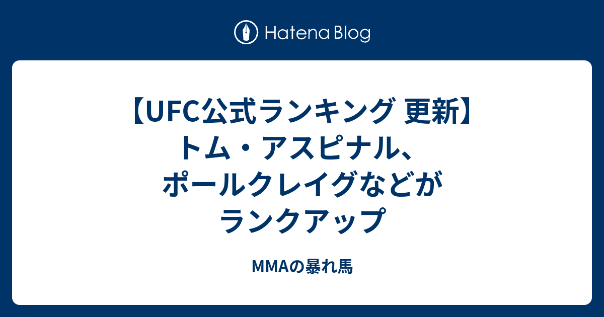 MMAの暴れ馬  UFC公式ランキング更新 トム・アスピナルがヘビー級4位に
