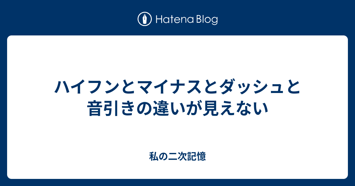 私の二次記憶   ハイフンとマイナスとダッシュと音引きの違いが見えない