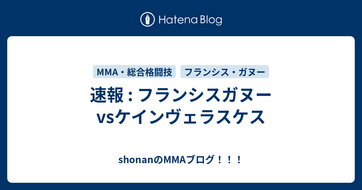 shonanのMMAブログ!!!  速報 : フランシスガヌーvsケインヴェラスケス