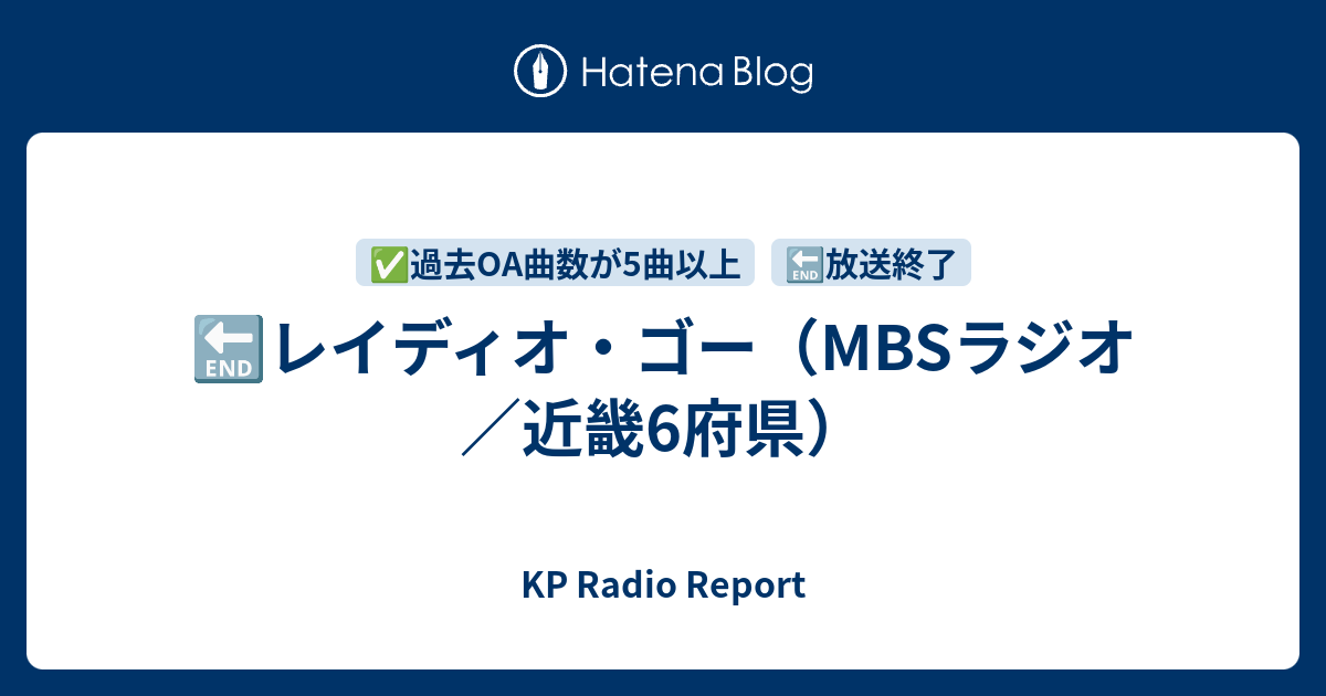 KP Radio Report  🔚レイディオ・ゴー(MBSラジオ/近畿6府県)