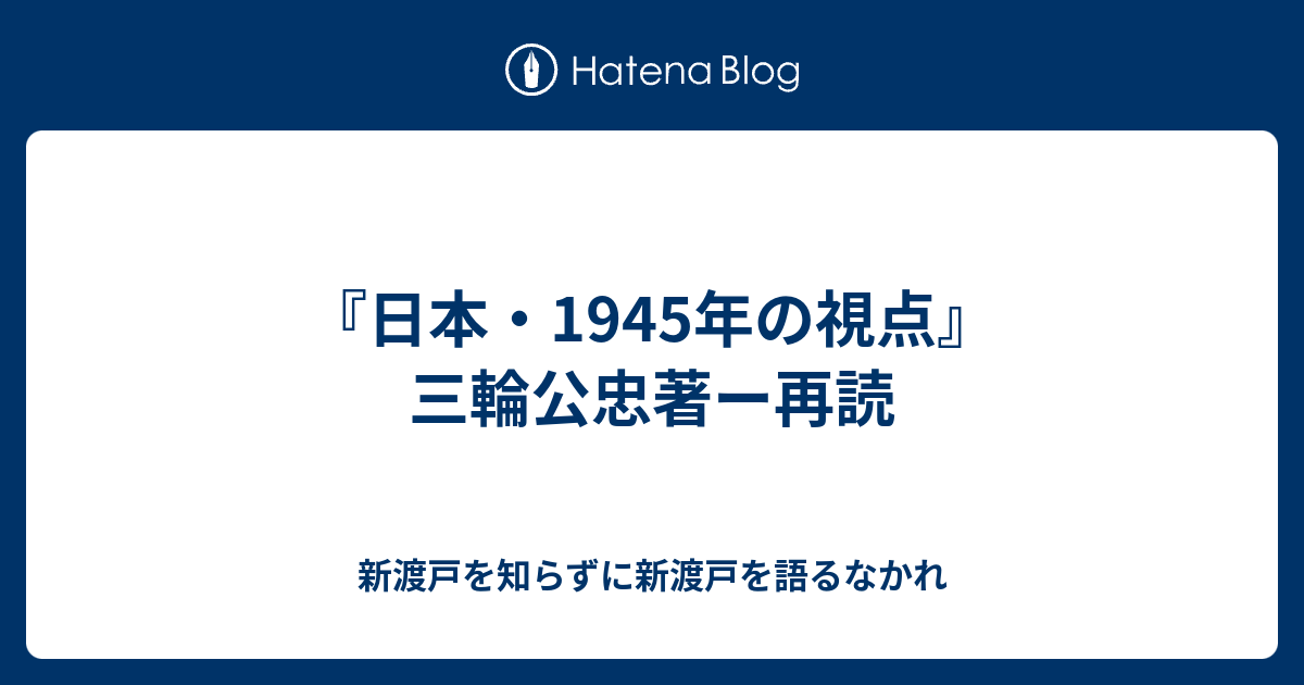 新渡戸を知らずに新渡戸を語るなかれ  『日本・1945年の視点』三輪公忠著ー再読