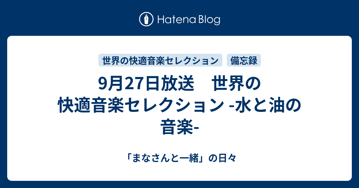 「まなさんと一緒」の日々  9月27日放送 世界の快適音楽セレクション -水と油の音楽-