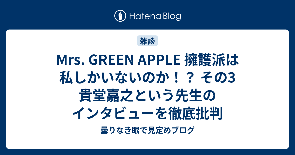 曇りなき眼で見定めブログ  Mrs. GREEN APPLE 擁護派は私しかいないのか!? その3 貴堂嘉之という先生のインタビューを徹底批判