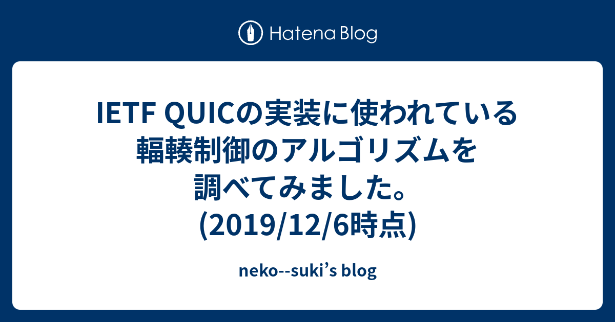neko--suki’s blog  IETF QUICの実装に使われている輻輳制御のアルゴリズムを調べてみました。(2019/12/6時点)