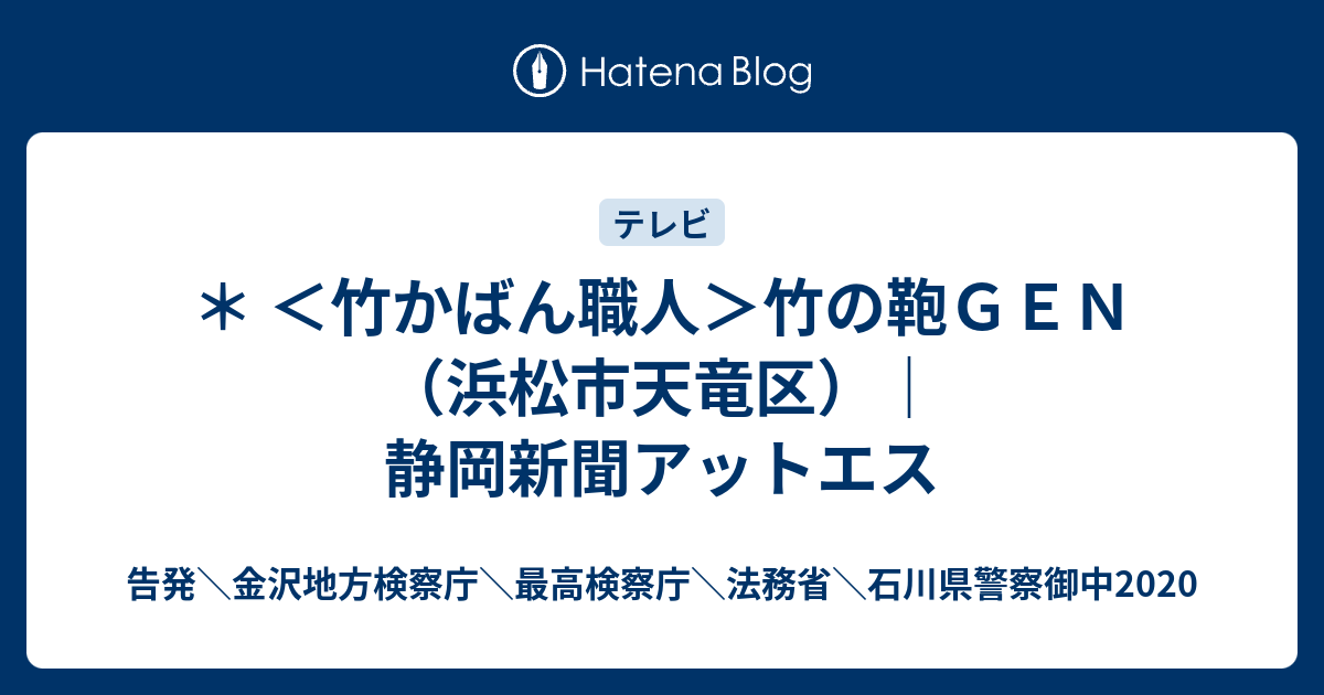 告発\金沢地方検察庁\最高検察庁\法務省\石川県警察御中2020  * <竹かばん職人>竹の鞄GEN(浜松市天竜区)|静岡新聞アットエス
