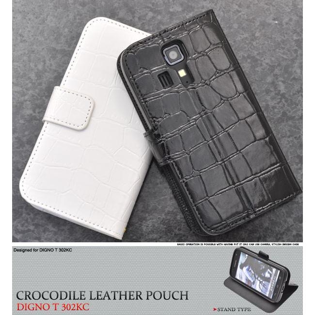 【送料無料】DIGNO T 302KC用クロコダイルレザーデザインスタンドケースポーチ【全2色】(ケース カバー スマホ Yモバイル ディグノ スマホケース クロコ ワニ革風 手帳型 ブック型 二つ折り 横開き スマホカバー digno 302kc)[M便 1/3]
