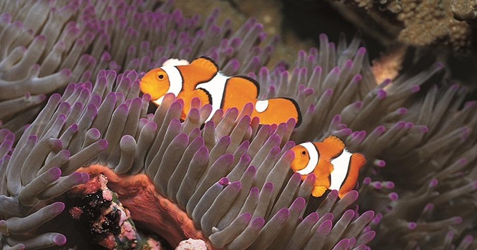 coral reef with  blue hard corals in tropical sea