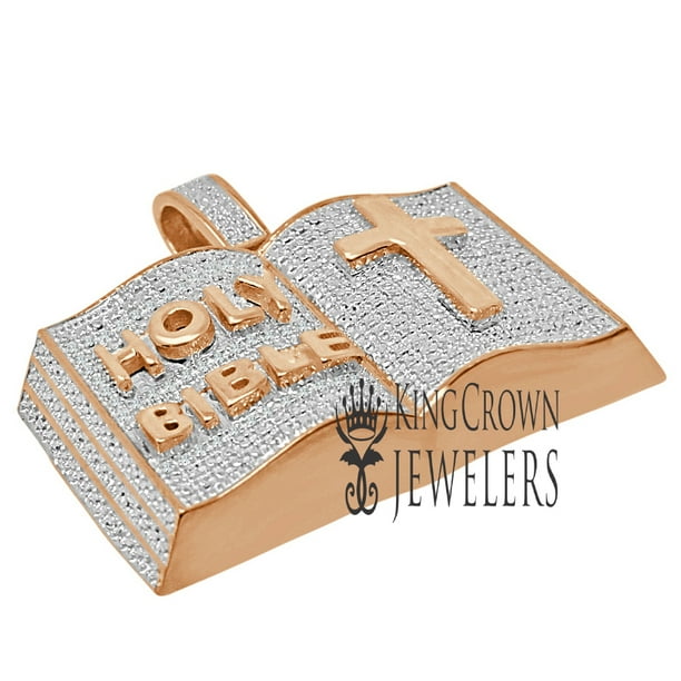 10K Yellow Gold Holy Bible Book Diamond Pendant 1.70" Mens Cross Pave Charm 1 Ct
