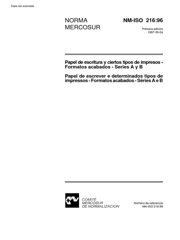 NBR NM ISO 216 - Papel de Escrever e Determinados Tipos de Impressos - Formatos Acabados - SeriesNBR NM ISO 216 - Papel de Escrever e Determinados Tipos de Impressos - Formatos Acabados - Series