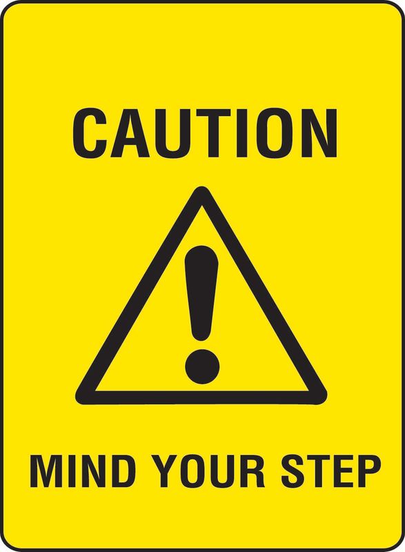 watch your step or mind your step caution sign with symbol of slippery surface,staircase steps,Hospital and offices floor sticker. Stock Vector