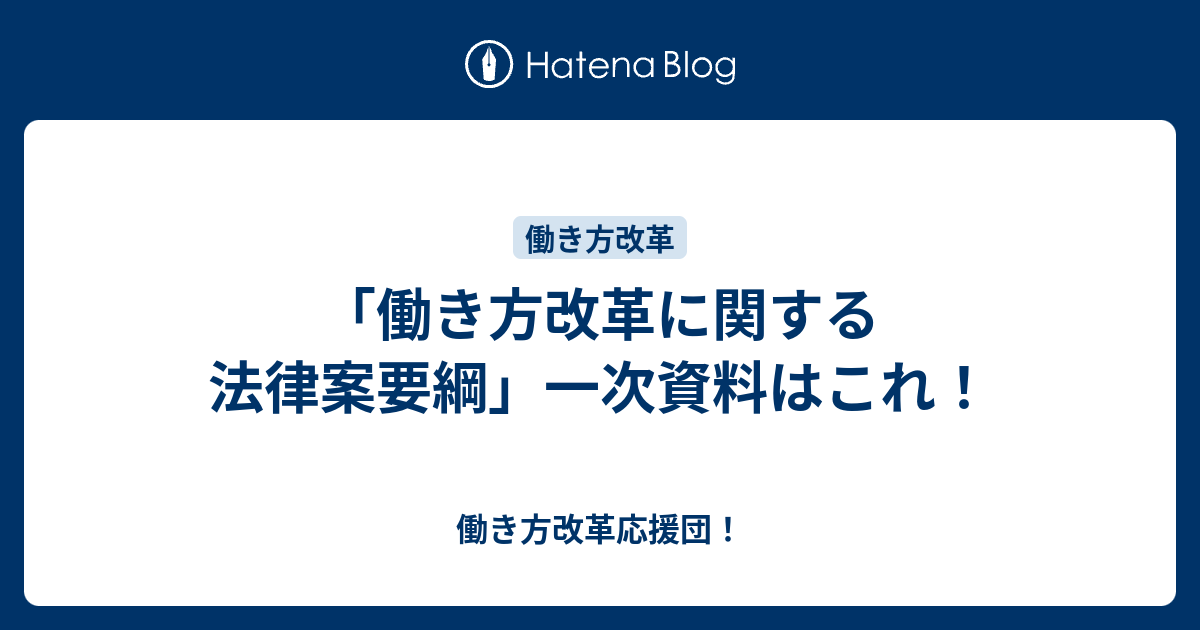 働き方改革応援団!  「働き方改革に関する法律案要綱」一次資料はこれ!